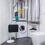 Koupelna má bidet, samostatnou toaletu a sprchu, zatímco pokoj má šatnu, pohovku a pracovní stůl.